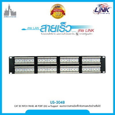 CAT 5E PATCH PANEL 48 PORT (2U) w/Support แผงกระจายสายมีเหล็กจัดสายและติดป้ายชื่อได้